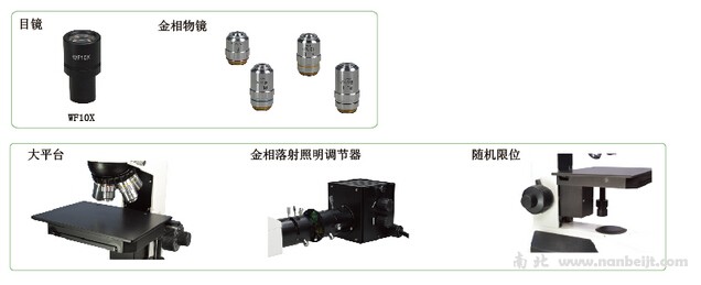 | 視場光欄、孔徑光欄、起偏振片,(黃、藍、綠)濾色片和磨砂玻璃 | ● | ● | |