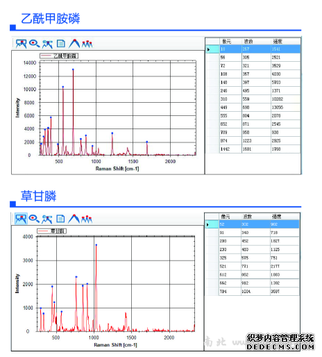 SSR系列檢測(cè)儀提供的農(nóng)、獸藥拉曼光譜圖譜庫,由檢驗(yàn)檢疫科學(xué)研究院,中檢國研(北京)科技有限公司,以及南京簡智儀器設(shè)備有限公司聯(lián)合采集。其標(biāo)準(zhǔn)品主要由Dr.Ehrenstorfer(DR)、sigma公司下的Riedel-de Han(RDH)、日本林純藥株式會(huì)社三家公司提供,共計(jì)642種農(nóng)藥、獸藥。每一種農(nóng)獸藥除標(biāo)準(zhǔn)拉曼光譜圖外,還包含其基本信息(包括英文通用名、中文通用名、CAS NO.、分子結(jié)構(gòu)式、分子式、標(biāo)準(zhǔn)品購買廠商、貨號(hào)、純度、理化性質(zhì)、用途),每一張拉曼譜圖都標(biāo)出特征峰位置。