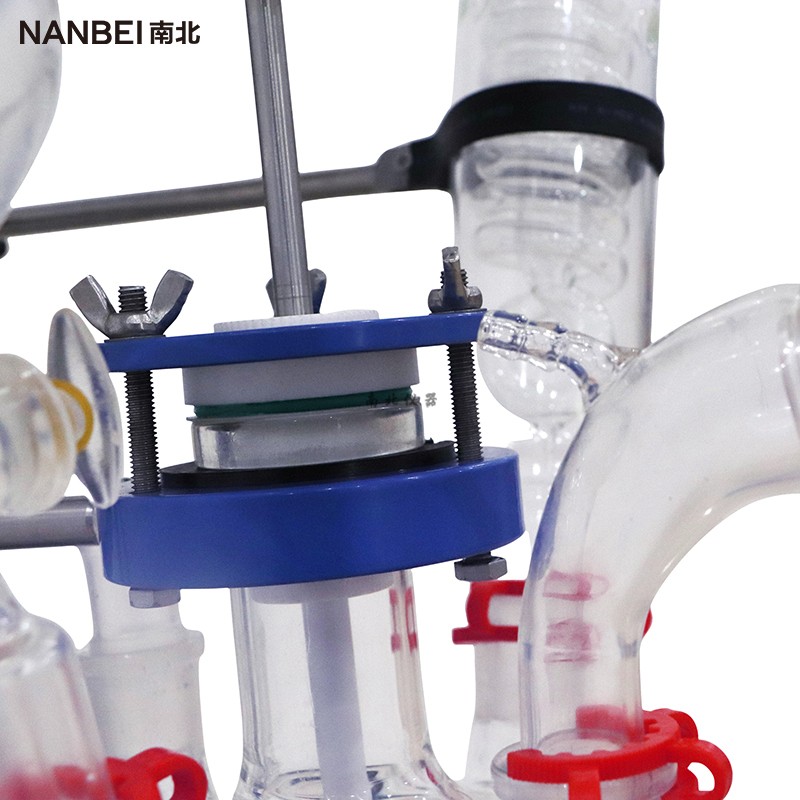 | 南北儀器單層玻璃反應釜具有電動恒速攪拌系統、冷凝、滴加系統、加熱浴鍋。在攪拌物料的同時,浴鍋對釜內物料進行加熱,在真空條件下可以提高蒸發效率(需連接真空裝置),溶媒蒸汽經玻璃冷凝盤管時冷卻成液體(需連接冷卻裝置),可回流到釜內,也可通過回流彎頭下部閥門進行回收。反應完畢,物料可從釜底的側出料口放出。