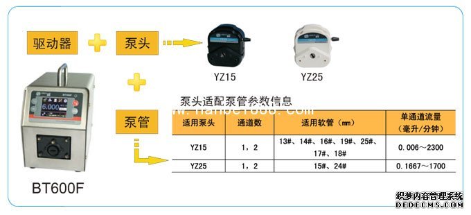BT600F調速型蠕動泵適用泵頭及軟管、流量參數(shù):