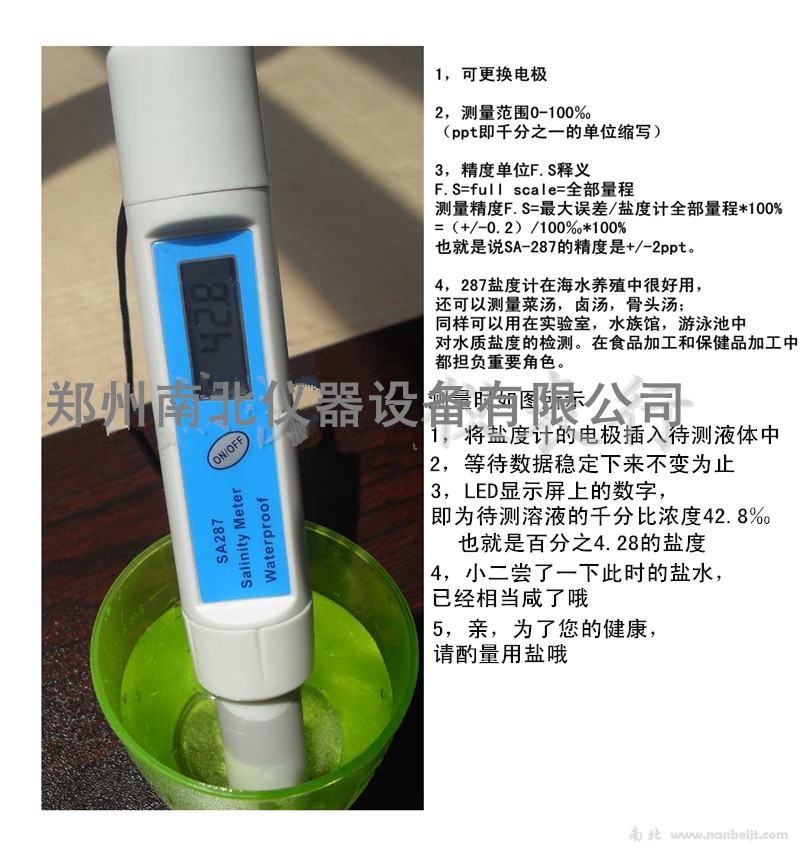 產品名稱:筆式數顯鹽度計SA-287 鹽度筆 海水鹽度檢測